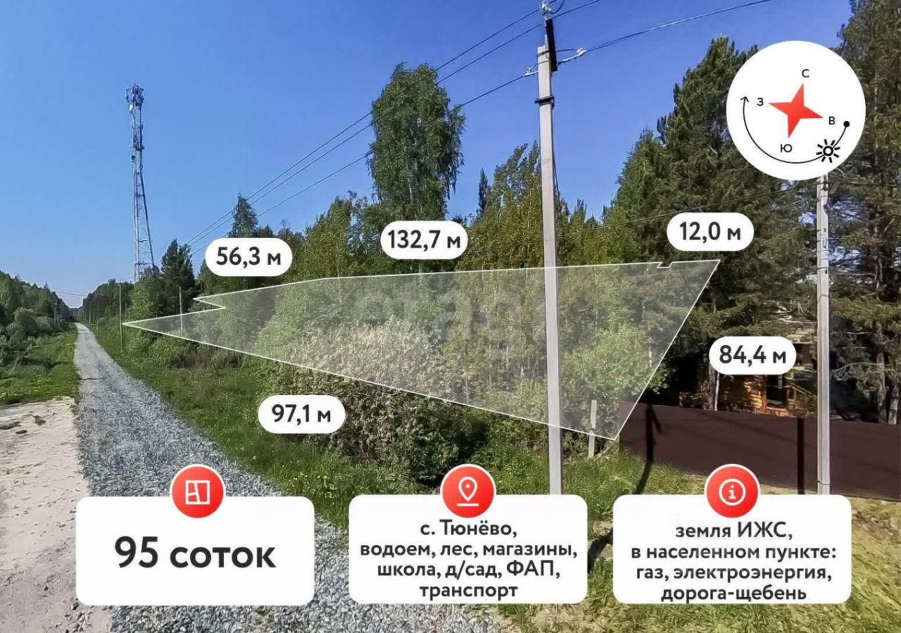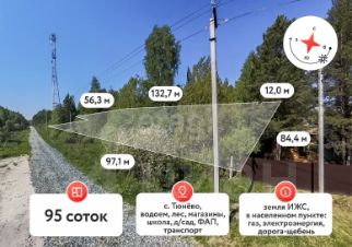 Предлагаю вашему вниманию земельный участок 95 сот ИЖС в самом с.Тюнево на Велижанском тракте! Данный участок можно размежевать и продать по розничной цене, на чем вы сможете заработать. Также этот участок подойдёт девелоперам, которые смогут организовать на этом участке необходимое пространство.