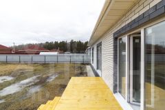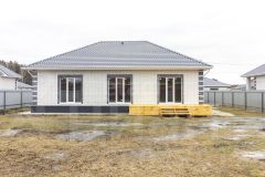 Конструктив дома обеспечивает долговечность и комфортную эксплуатацию: стены из 30-сантиметрового керамзитоблока с утеплением и облицовкой кирпичом гарантируют высокую энергоэффективность, а фундамент на буро-набивных сваях с ленточной основой и плитным перекрытием обеспечивает устойчивость.