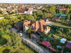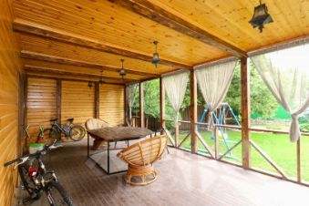 На участке расположен новый двухэтажный банный комплекс площадью 45 м2 с просторной комнатой отдыха и террасой 18 м2. На 2 этаже банного комплекса расположена комната 8 м2 для обслуживающего персонала (сторож, горничная и т.д.).