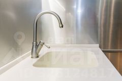 Кухонный гарнитур выполнен из МДФ, фасады крашеные, фурнитура BLUM (Австрия, премиум-сегмент). Холодильник марки Electrolux. Варочная панель, духовой шкаф, микроволновая печь - производитель Gorenie.