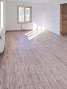 В доме выполнены ремонтные работы: уложен ламинат, смонтирован натяжной потолок с точечными светильниками, установлены радиаторы отопления, стены - выровнены и оштукатурены, поклеены обои под покраску.