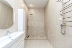 - Сантехника включает стильную мебель в ванной, высококачественные краны и душевую лейку, а также элегантное зеркало от итальянского бренда Rocco, создающее атмосферу уюта и роскоши.