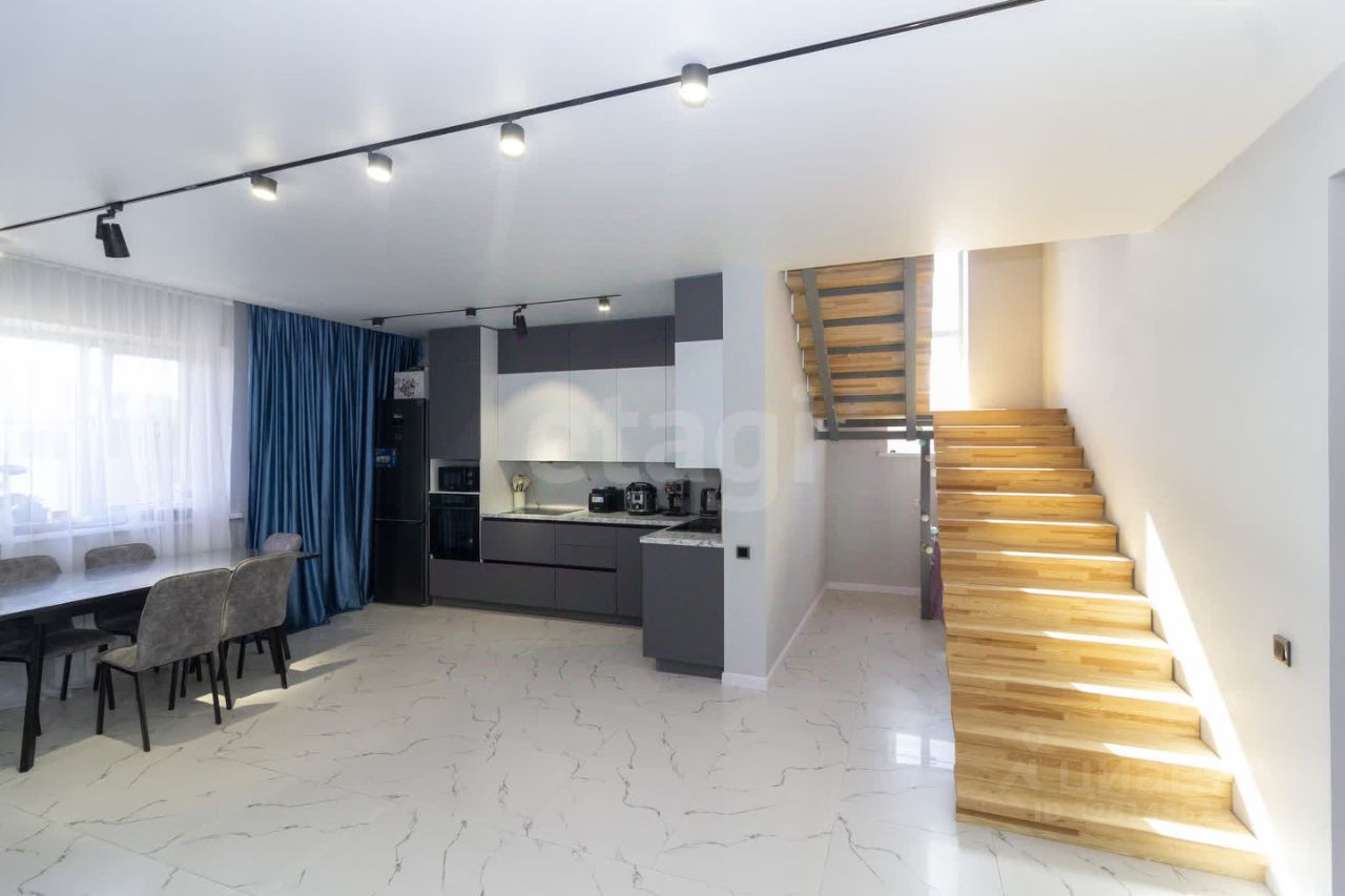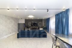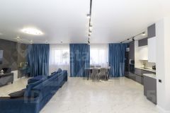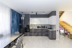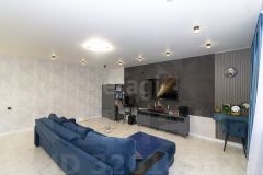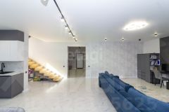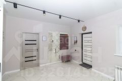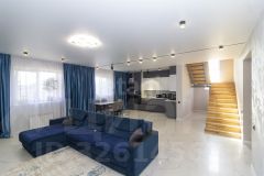 На первом этаже выполнен качественный ремонт: на полу керамогранит с теплым полом, стены окрашены, в гостевой спальне наклеины обои, а подвесной потолок украшен точечными светильниками. Мебель может остаться по договоренности.