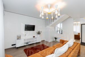 В квартире выполнен ремонт по дизайн проекту: венецианская штукатурка на стенах всех комнат, кварц винил на полу, качественные межкомнатные двери, лестница из массива, натяжной потолок, дизайнерские люстры и светильники, сенсорные выключатели.