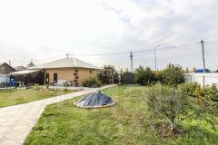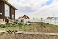 Участок 11.41 сотки. Полностью благоустроен: дорожки из брусчатки, газон, плодовые деревья, теплица, хозпостройка.
