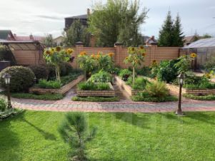 Ландшафтный дизайн на подъезде к дому и внутри сада с плодоносными деревьями. На территории имеется алюминиевая теплица, летняя кухня с барбекю и мангалом. Гараж на две машины с возможностью расширения. Также имеется дровяник с погребом. Забор полностью из Голицынского керамического кирпича.