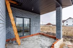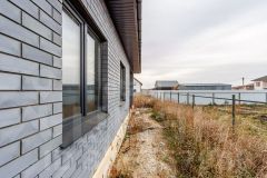 Дом состоящий из 3 комнат, выполнен из керамзитных блоков, облицован селикатным кирпичом, стены утеплены пенополистиролом. Крыша покрыта металлочерепицей и утеплена 20см слоем мин.ваты.