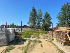 Возведен ленточный фундамент на буронабивных сваях под баню размеры 6м.х6м, под забор по всему периметру участка.