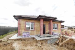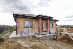 Стены — керамзитоблок 290 мм + утеплитель 100 мм + облицовочный кирпич 120 мм