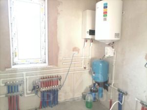 Все коммуникации подключены и заведены. Скважина 30 метров с погружным эл.насосом. Септик переливной на 2 колодца. Установлен электрокотел и водонагреватель. Электричество 380В заведено в дом. По дому сделаны выводы под розетки и выключатели, проведена разводка интернет и тв кабеля. Отопление за счет системы водяного теплого пола по всей площади дома + в каждом комнате установлены радиаторы. Сделаны водоотливы.