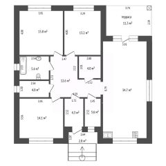 Фундамент: ленточный, с доступом в подвальное помещение, где проходят все коммуникации