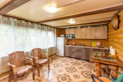 Весь первый этаж оборудован функцией теплого пола, стены - сруб оцилиндрованное бревно.