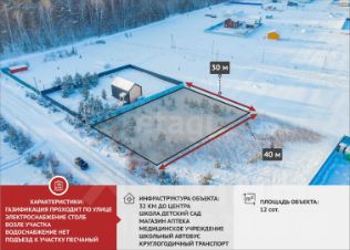 Участок обладает всеми необходимыми коммуникациями: столбы электроснабжения находятся непосредственно около земли, природный газ подведён в посёлок. Идеально подходит для возведения собственного загородного дома, предназначенного для круглогодичного комфортного проживания всей семьёй.
