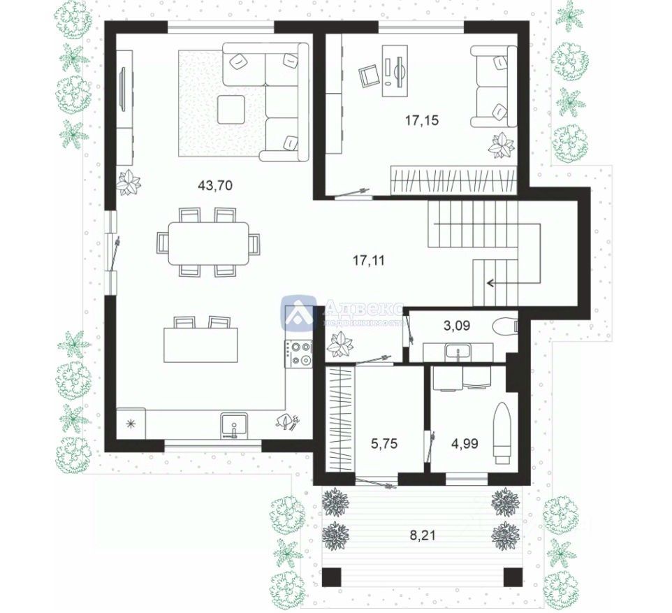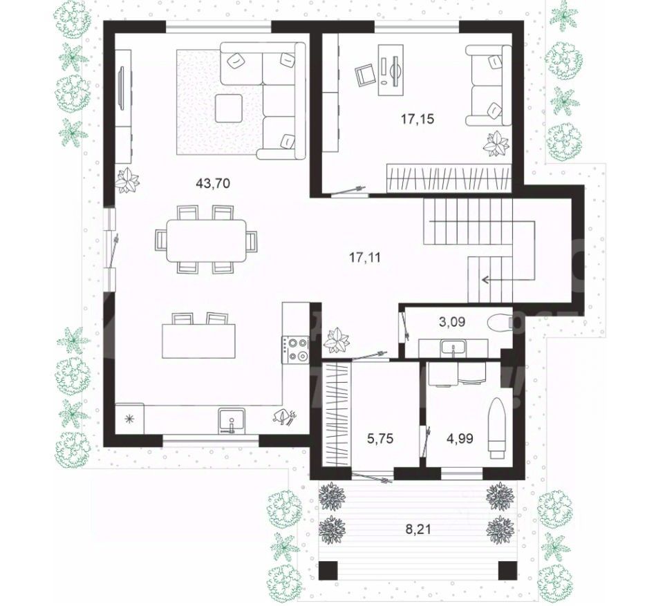 двумя уровнями с функциональной планировкой общей площадью 179,36 кв.м., где нет бесполезных квадратных метров.