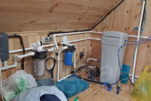Скважина находится под котельной глубина 40 м. есть насос. Вода заведена в дом требуется лишь незначительная доводка системы. Септик 7 кубов, находится за гаражом с выводом отсосной трубой за забор.