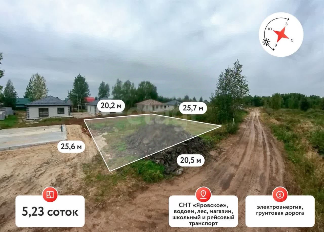 Продается участок ,рядом с СНТ "Яровское",земли населенных пунктов,ведение садоводства.Возможно строительство дома с подрядной организацией по вашим или предложенным проектам,с различными видами отделки. Рядом с участком отсыпали новую дорогу,весной будут облагораживать асфальтовой срезкой, уже устанавливают эл.столбы. СНТ находится рядом с Сити-Молл. Ходит городской транспорт круглогодично.В обществе есть два магазина ,которые работают в любое время года. Детей возит школьный автобус в школу п. Яр.Там же находятся детские сады. От Тобольского тракта до дачных обществ поле,которое уже начали застраивать новыми жилыми комплексами. Идет комплексное развитие территории. Заходит несколько застройщиков одновременно. Через 2-3 года данные дачные общества будут большим коттеджным поселком. Место высокое,отсыпки не требует.