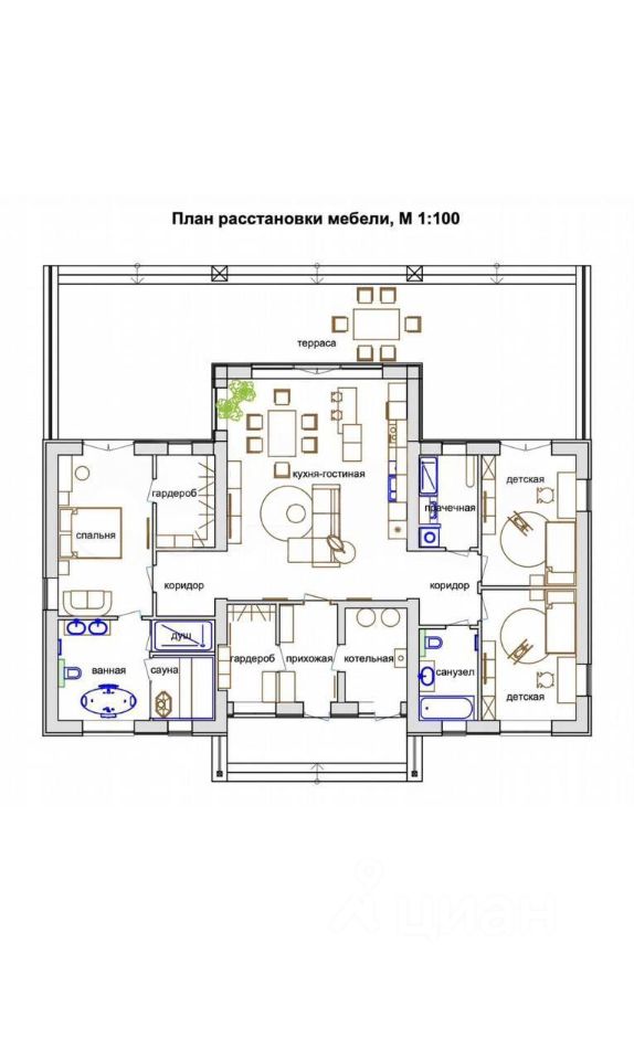Бойлерная с выходом в прачечную, отдельный гардероб для верхней одежды.