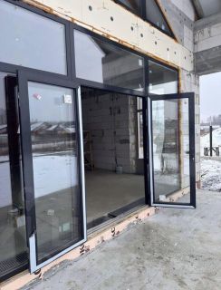Панорамные окна в пол с алюминиевыми рамами и качественной фурнитурой.