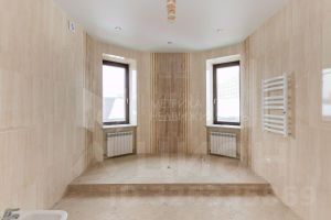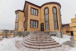 В доме также имеются монолитные перекрытия и две монолитные лестницы, выложенные гранитом. Окна в доме выполнены из дерева, а крыша покрыта гибкой финской черепицей.