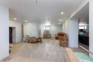 В коттедже выполнен ремонт на втором и цокольном этажах в 2021 году. На первом этаже выполнена улучшенная черновая отделка, включающая оштукатуренные стены и стяжку пола. Все коммуникации заведены в дом, включая газ, электричество, отопление, теплые полы в цокольном этаже, централизованное водоснабжение и канализацию. В доме есть 7 комнат, большая кухня-столовая и 2 ванные комнаты. Большое количество окон делает дом очень светлым, а столовая расположена в зоне с панорамным видом.