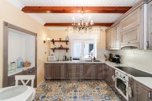 Кухонный гарнитур из массива дерева, вся встроенная техника фирм KORTING и Electrolux, большая варочная панель, холодильник Libher, в зале действующий камин в гостиной, вся мебель в доме из массива, включая встроенные шкафы в ванной, гардеробе и прихожей.