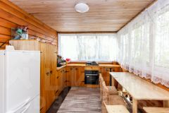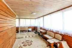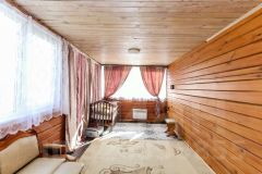 Построен из бруса. Брус уже дал усадку. Утеплен ленточной паклей. Современный ремонт. На первом этаже банный комплекс. Кухня. Так же технические помещения.