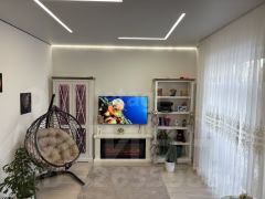 Продается прекрасный дом, который станет идеальным местом для вашей семьи! На первом этаже вас встретит котельная, гостевой санузел, жилая комната. Просторная кухня, объединенная с гостиной (32 кв). Из нее есть выход на террасу, расположенную на солнечной стороне. На втором этаже расположены три светлые спальни (16/16/10 кв.м), постирочная и второй санузел (7 кв.м), что обеспечит вам максимальный комфорт и приватность. Участок ровный, сухой, заезд с двух сторон, s - 7,25 соток предоставляет достаточно пространства для парковки, детской площадки и зоны для барбекю, где вы сможете проводить незабываемые вечера с друзьями и семьей. Дом построен с использованием современных технологий и качественных материалов: монолитная плита фундамента, керамзитоблок, облицовка керамический кирпич), надежная кровля из металлочерепицы, установлены снегодержатели. Межэтажные перекрытия выполнены из ЖБ плит, а чердачное перекрытие из деревянных балок. Утепление дома обеспечивается пенопластом ППС и минеральной ватой, а окна с тройным остеклением и пятикамерным профилем гарантируют отличную тепло- и звукоизоляцию. Система отопления включает электрический котел и теплый водяной пол, электромонтаж выполнен с разводкой по всему дому вводом трехфазного 15 кВт. Имеется газовый котел (основной источник обогрева). Вентиляция предусмотрена в кухне, санузлах и котельной, водоснабжение осуществляется через скважину с глубинным насосом, в то время как водоотведение через переливной септик объемом 8 куб.м. Отделка выполнена на высоком уровне: цементно-песчаная стяжка пола и выровненные стены "под маяк", отштукатурены, покрыты декоративной штукатуркой, в комнатах итальянские обои из качественной текстуры в нейтральных тонах. Оригинальные современные потолки (люстра, треки, ленты, подсветки). Полы покрыты кварц винилом, второй этаж ламинат. Межэтажная лестница выполнена из бетона, оформлена березой, перила из стекла, которое дополнительно придает дому пространство. В доме установлена современная мебель. Расположение очень выгодное: в шаговой доступности магазины, школы, детские сады, автобусные остановки, академия спорта. Дополнительно имеется зона барбекю, баня, высажены кустарники и молодые туи. Не упустите возможность стать владельцем этого замечательного дома, где каждый уголок создан для комфортной и счастливой жизни! Звоните прямо сейчас для организации просмотра! Дом на гарантии от подрядчика! МЫ ГАРАНТИРУЕМ ФИНАНСОВУЮ БЕЗОПАСНОСТЬ ДЛЯ НАШИХ КЛИЕНТОВ. Код пользователя: 187417 Номер в базе: 5799261