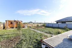 Современный одноэтажный дом площадью 182,8 кв.м 3+ (кухня-гостиная и 3 спальни), кухня-гостиная большая по площади, есть возможность изолировать кухню, на участке 8 соток в деревне Падерина. РАСПОЛОЖЕНИЕ УЧАСТКА И ДОМА В НОВОЙ НАРЕЗКЕ ПО МОСКОВСКОМУ ТРАКТУ В 15 МИН ДО ЦЕНТРА. Дом очень теплый, комфортный, подъезд к участку с 2-х строн. Дом с новым ремонтом: керамогранит на полу, покрашенные стены с холстом, натяжной потолок с точечным освещением. Вся мебель и техника представленная на фото остается при договоренности. Стены из газобетона (400 мм), обложены лиственницей и декоративным кирпичом. Крыша утеплена эковатой (200 мм), покрыта мягкой черепицей Docke (30-летний срок службы). Окна 5-камерные, звукоизолированные, с теплосберегающим покрытием. Высокие потолки (3 м черновые, 2,8 м в чистоте). Планировка: * 3 спальни, кухня-гостиная (11 м² кухня, 40 м² гостиная), * 2 детские спальни (по 10 м²), * родительская спальня (15,5 м²), * постирочная - гардеробная (4,2 м²), * закрытая терраса (13 м²), *открытая терраса (27 м²), *санузел (7,4 м²), *прихожая, *техническое помещение *гараж (43 м², с двумя секционными воротами и смотровой ямой). В техническом помещении: электрический котел ( в доме теплый пол и батареи), насос для скважины и системы очистки воды. Скважина 35 м, вода пригодна для питья и бытовых нужд. Канализация - септик. Дом подключен к электричеству, газ стояк выведен, но не подключен. Отопление электрическое, средние ежемесячные расходы на отопление и горячую воду около 4500 рубле в зимние месяца. Земельный участок ИЖС, подьезд асфальт и до дома 40 м щебеня, отсыпан и выровнен, посажены яблони, груша, сливы, калина. рябина, жимолость, гортензии. На при домовой территории, возможно расположить баню и доп. постройки. Сейчас есть фундамент род баню монолитная плита (5*6м), на фундаменте стоит небольшая баня из бруса (2,5*4 м). Все необходимое рядом, в 500 метрах супермаркет. Дом возможно приобрести по сельской ипотеке под 3%, никаких занижений в договоре не нужно. Продаем по причине переезда! Возможен обмен на квартиру с доплатой. Стоимость для дома низкая: * 4 500 000 - стоимость участка (участок 2-мя сторонами не граничит с соседями (20 и 40 м)); * 5 000 000 - ремонт мебель и техника; * 10 300 000 - дом 180 м2 с 2-мя гаражами и террасами. МЫ ГАРАНТИРУЕМ ФИНАНСОВУЮ БЕЗОПАСНОСТЬ ДЛЯ НАШИХ КЛИЕНТОВ. Код пользователя: 187417 Номер в базе: 9101488