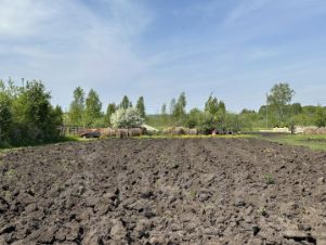 Участок площадью 50 соток, огорожен забором с трех сторон.