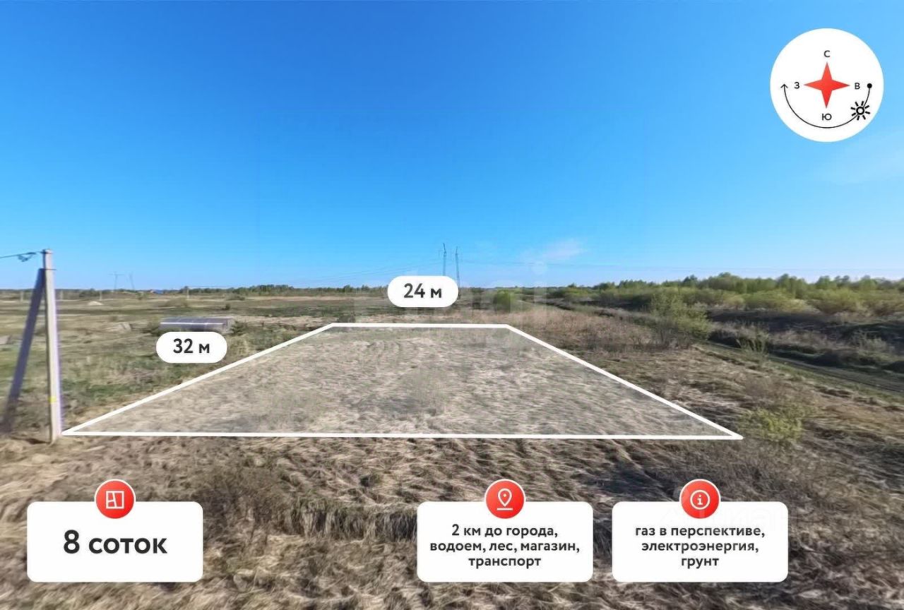 Вашему вниманию предлагается земельный участок правильной геометрической формы в г. Тюмени, расположенный северо-восточнее п. Березняковский. По улице активно ведется строительство домов, один дом уже возведен. Категория земель данного з/у: Земли населенных пунктов, разрешенное использование: для личного подсобного хозяйства, которое за неделю можно перевести в ИЖС. На данном земельном участке можно построить дом для проживания или отдыха. Установлены столбы для подключения электричества. Газ - в перспективе. Участок не разработан, не огорожен. Возможна помощь в ипотеке для приобретения участка.