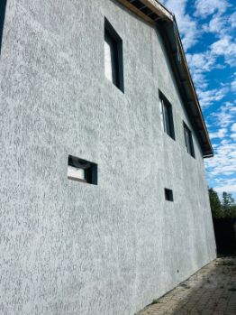 Дом на ленточном фундаменте на сваях, утепление фундамента . Стены из 300 мм керамзитоблока . Утепление стен 120 мм теплые полы на первом этаже по всему дому . Утепление межэтажного перекрытия 200 мм . Утепление кровли 250 мм что дает меньше тепло потерь разведена электрика и сантехника из качественных материалов . Собран каркас лестницы на второй этаж . Окна двухкамерные 76 профиль с каленым и тонированным стеклом.