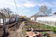 Земельный участок площадью 3 сотки. На нем комфортно расположились баня, дровяник под навесом и сарай. Для полива и бани предусмотрена скважина глубиной 7 м. Участок утопает в зелени: здесь растут медовая яблоня, черная смородина, крыжовник, вишня, слива, груша и клубника. Также имеется оборудованное место для парковки автомобиля.