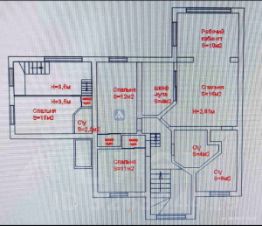 Второй этаж - две детские по 10 и 11 кв.м., санузел4 кв.м., родительская спальня 16.5 кв.м. с собственным санузлом 8 кв.м.
