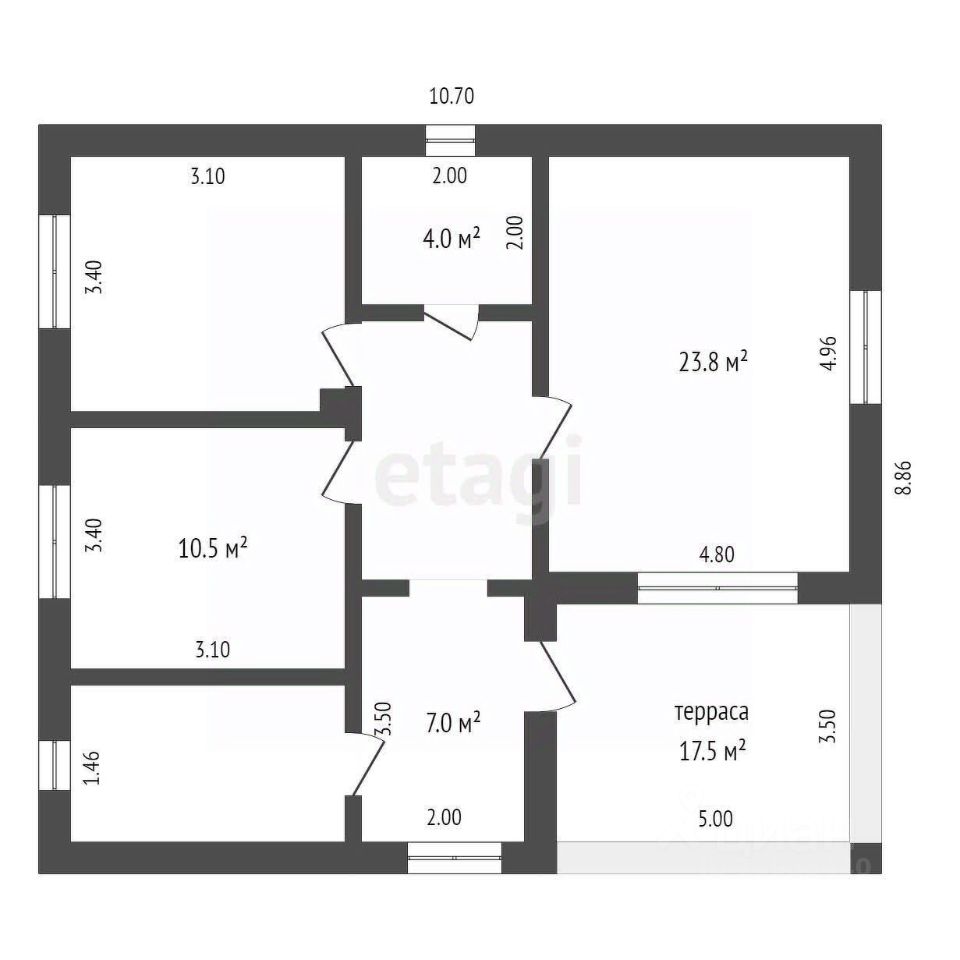 - Уютная терраса размером 17,5 м²