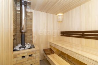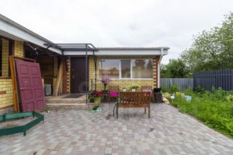 Построенный из керамзитоблоков с кирпичной облицовкой, дом предлагает хорошую теплоизоляцию, что является важным аспектом для комфортного проживания зимой. Баня из бруса также облицована кирпичом, что добавляет эстетическую привлекательность и долговечность.