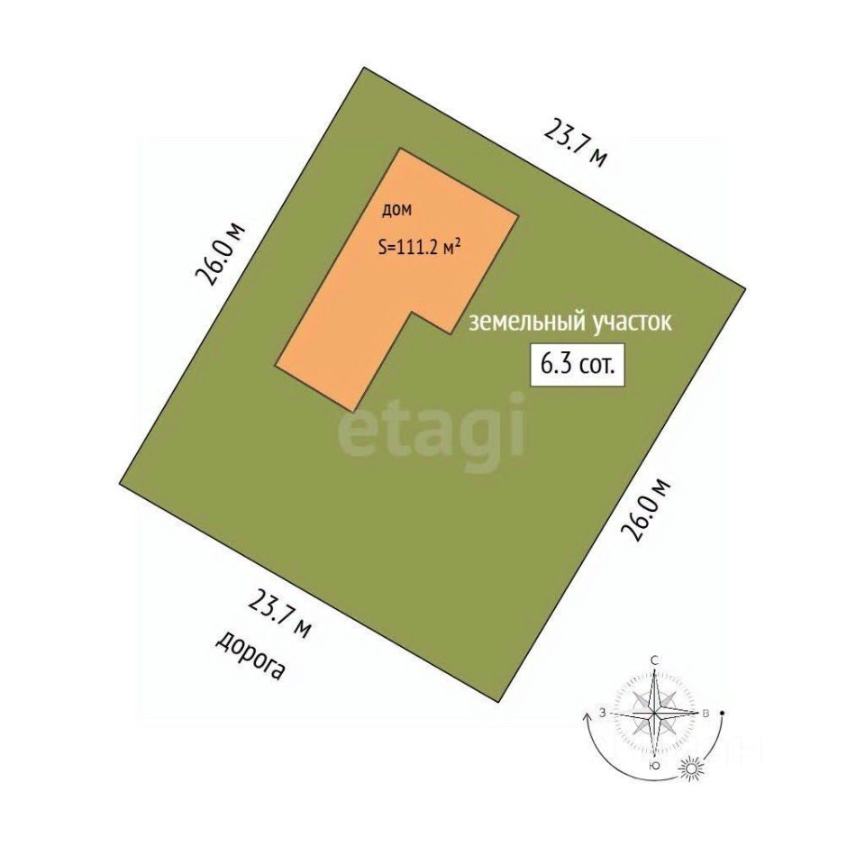 На участке правильной формы (6,3 соток) располагается самый "живой", экологичный и здоровый дом из бруса, заготовка древесины была осуществлена с соблюдением технологий при сухой морозной температуре. Пропил на торцах и прорезях без скручиваний и трещин.