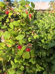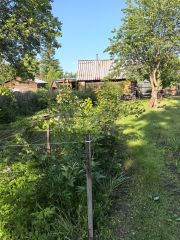 На участке есть много плодоносящих деревьев: яблони, вишни, сливы, ирга, черемуха, черноплодная рябина. Из ягод есть малина, красная и черная смородина и клубника. Так же участок украшают сирень (два вида), дуб, ель и другие растения.