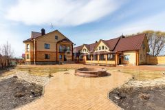 1) Придомовая территория которая включает входную группу с дорожками, клумбами, фонтаном с подсветкой.