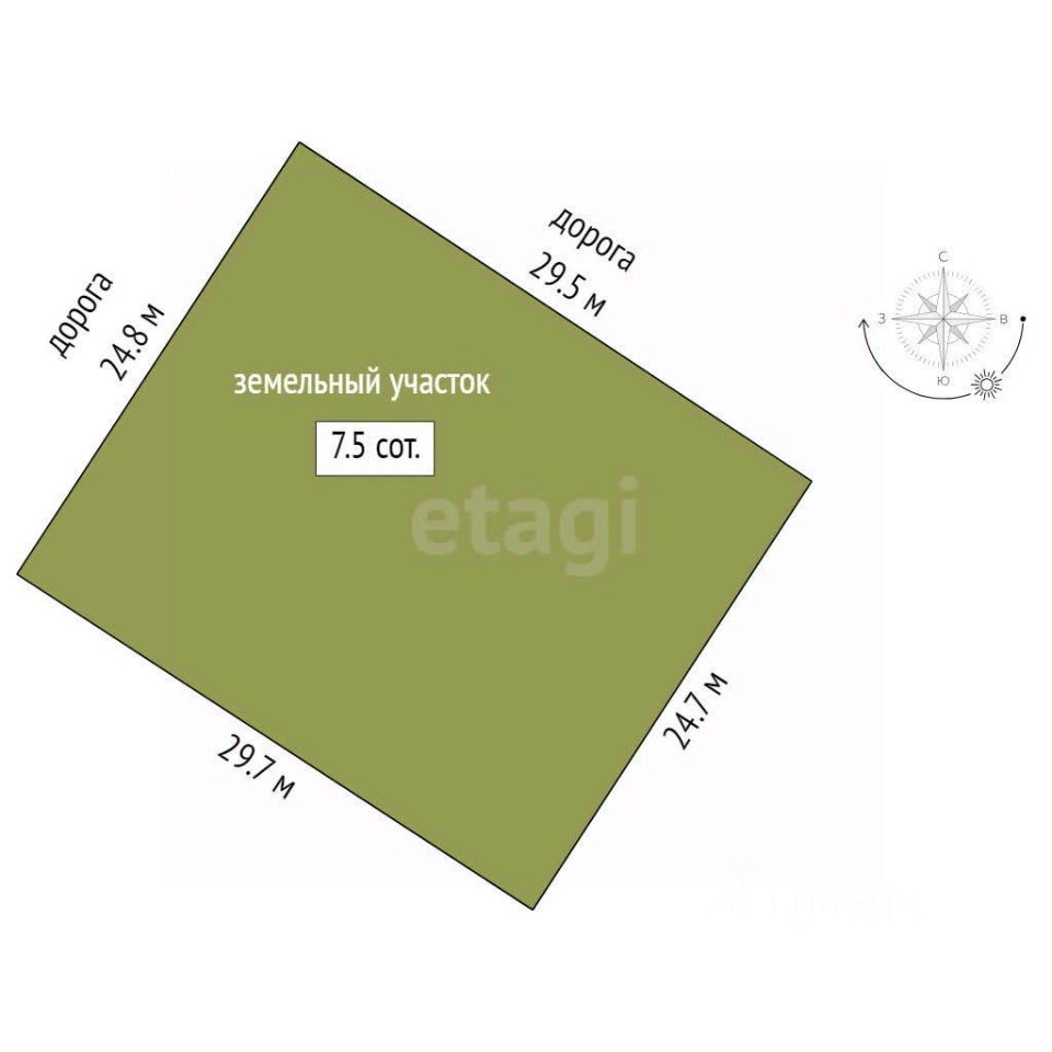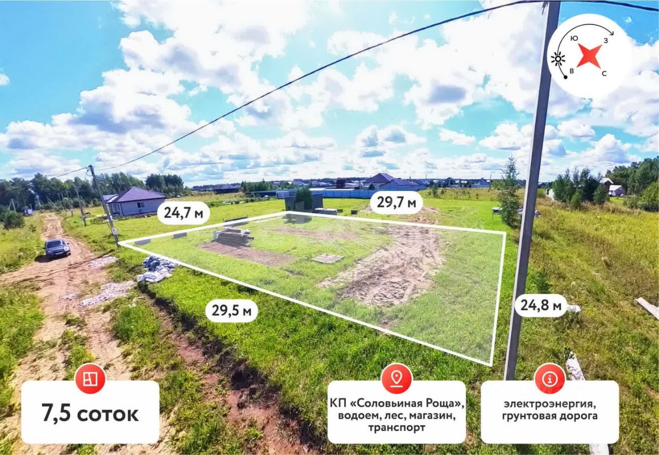 Электричество, дороги, перспективное местоположение, 7,5 соток, 1 взрослый собственник.