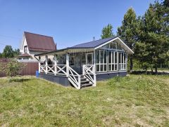 Это идеальный вариант сам участок угловой и имеет правильную прямоугольную форму, дом-баня построен из бруса, теплые полы на кухне в мойке в парилке, отопление электрическое, водоснабжение холодное и горячее, на кухне витражные окна, подключена система умный дом. Просторная терраса, мангальная зона. Уличное освещение с пульта по периметру. Участок огорожен высоким забором, есть многолетние насаждения яблони, груши.