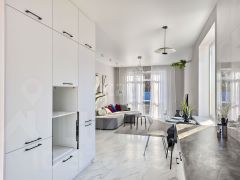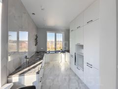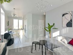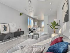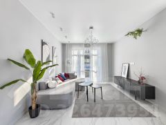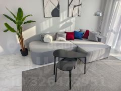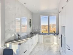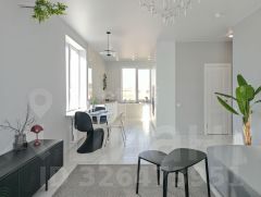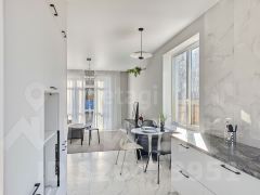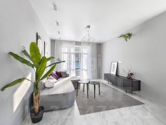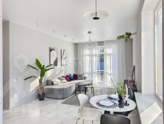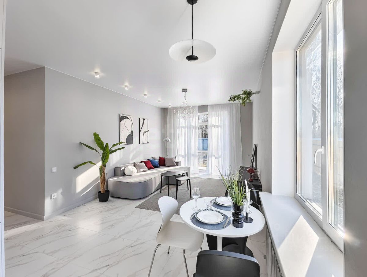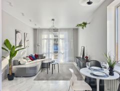 Потолки — натяжные с точечными светильниками и дизайнерскими люстрами.