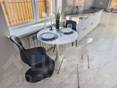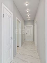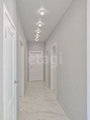 Полы: керамогранит в кухне-гостиной, прихожей и санузлах; в спальнях — ламинат.