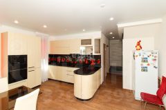 1 этаж: светлая кухня-гостиная 26,6 м², гостевой санузел, прихожая 6,6 м² с гардеробной.