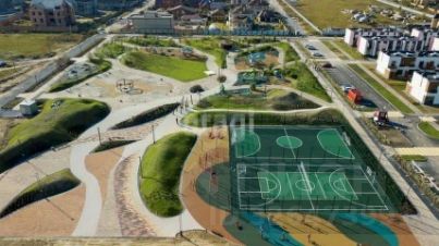 - Детские и спортивные площадки, прогулочные и велодорожки (около 5 км).