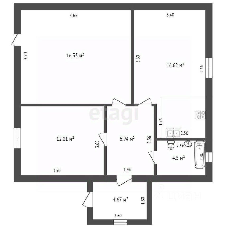 Внутри вас ждет просторная кухня-гостиная, где можно проводить время с семьей и друзьями, а также две светлые комнаты, которые легко трансформируются под ваши нужды. Совмещенный санузел и функциональная прихожая добавляют удобства и практичности вашему новому дому.