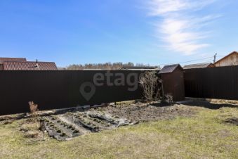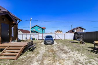 Участок полностью огорожен забором из профнастила. На лицевой линии профнастил под текстуру дерева. Имеются центральные ворота - откатные + калитка и хоз ворота распашные. При заезде в центральные ворота, во дворе уложены дорожные плиты под одну машину. На участке имеется культурный уличный туалет.