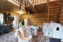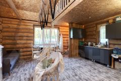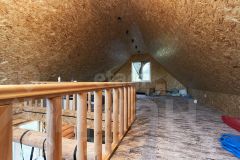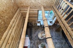 Дом построен из редкого диаметра бревно размером 38 см, который не нужно утеплять ни снаружи ни внутри. Пол первого и второго этажа утеплены 20 см слоем ваты. Материал покрытия пола - дсп и качественная половая доска. Септик переливной.
