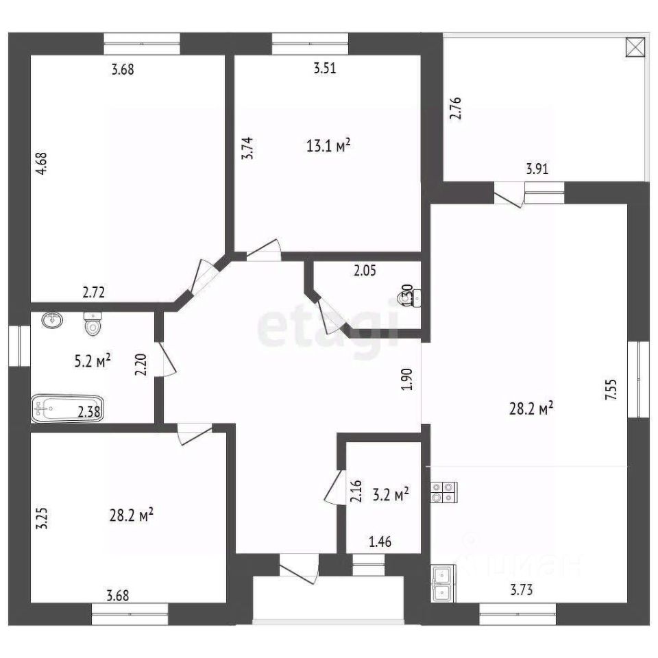 Отопление обеспечивается электрическим котлом, а также есть возможность подключения к центральным системам водоснабжения и канализации.