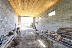 На участке имеется недострой площадью 300 квадратных метров, который включает в себя высокий гараж, баню с предбанником и выход на 2 этаж, где располагается комната отдыха.
