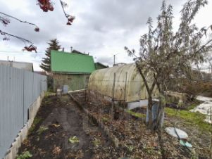 Земля отличается высокой плодородностью: здесь высажены яблони, облепиха, малина, смородина и клубника, что обеспечивает ежегодный урожай. Инфраструктура участка включает две теплицы, сарай, дровяник и уличный туалет.